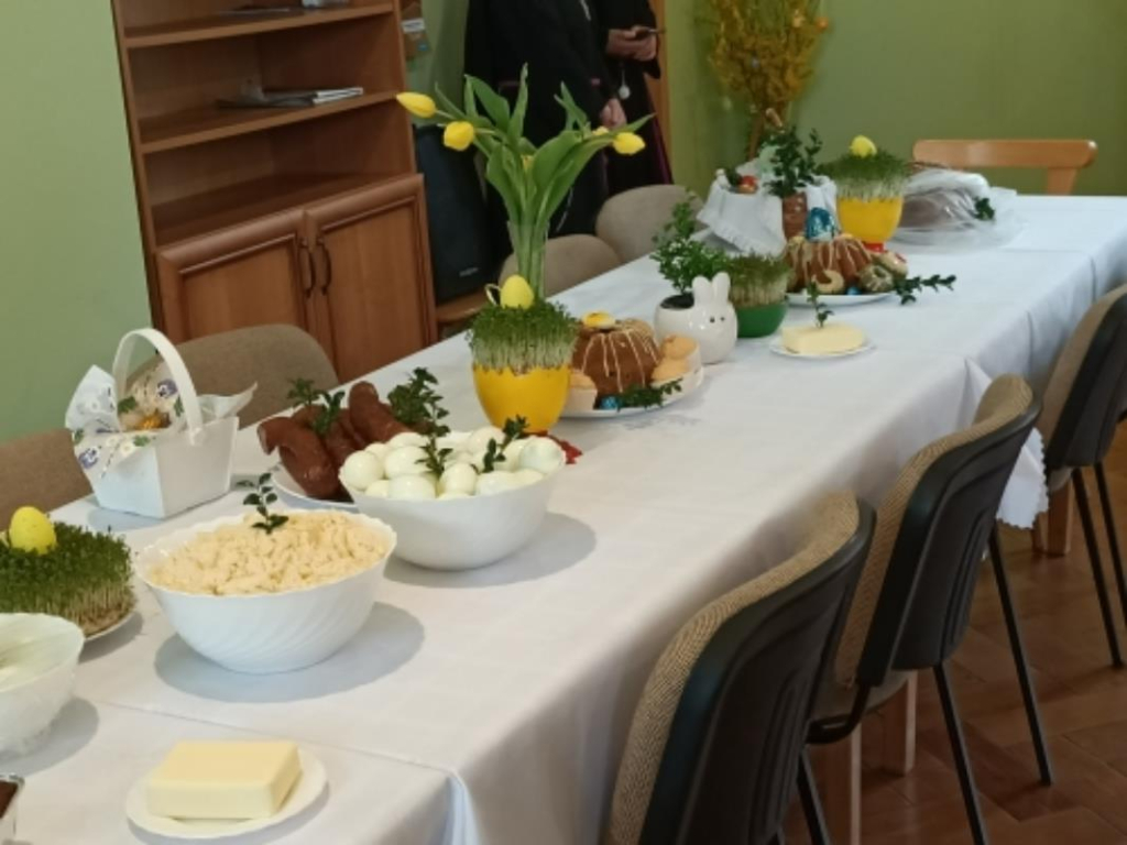w Wielką Sobotę, 8 kwietnia, o godz. 12.30, Biskup Rzeszowski Jan Wątroba poświęcił pokarmy wielkanocne dla DKS, następnie uczestniczył w obiedzie z księżmi i siostrami. W czasie obiadu dyrektor domu ks. Jerzy Buczek złożył Dostojnemu Gościowi życzenia świąteczne, a następnie Biskup Ordynariusz złożył życzenia wszystkim obecnym udzielił im pasterskiego błogosławieństwa. Po obiedzie odwiedził księży seniorów leżących w swoich pokojach.